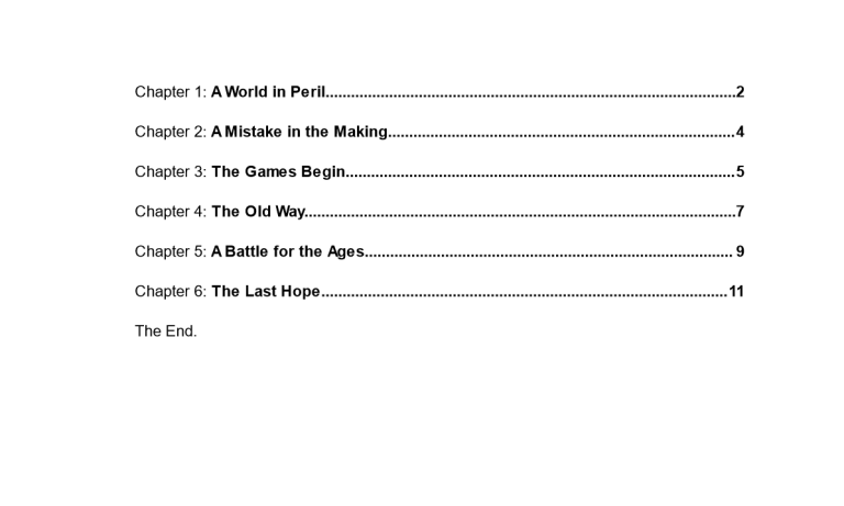 Chapter 1: A World in Peril……………………………. 2